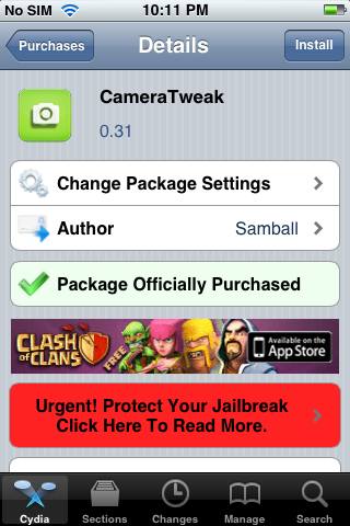 (the Cydia main page of CameraTweak)