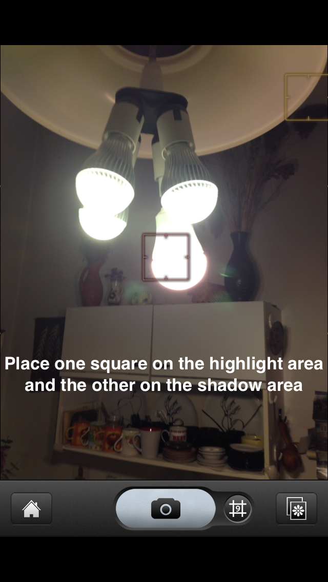 Here, I've positioned the “Exposure” indicator over one of the LED bulbs, while I've set the focus indicator elsewhere.