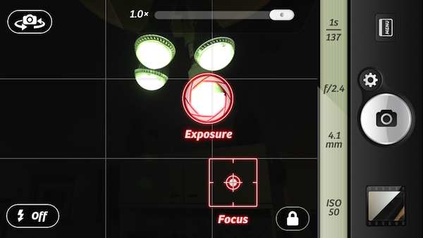 I'll elaborate more on third-party apps in my next articles to help you choose the right one. For the time being, let me tell you that even the very cheap (and very popular) Camera+ (AppStore link; $1.99) is able to do this: