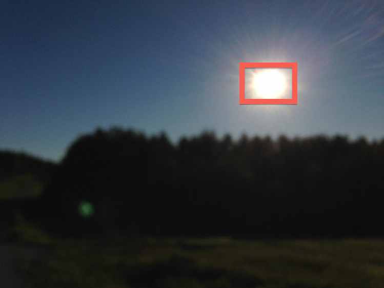 As the standard API also supports separate boxes for light metering (it's the one that you'll want to point to the Sun to force the image to be as underexposed as possible), CameraTweak makes it available in the stock Camera client too. Let me show you an example: