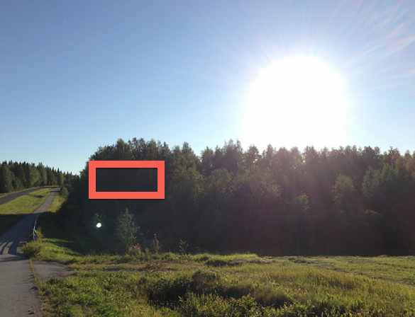 Let's see another pair of shots – now, completely outside, next to the Iisalmi-Sonkajärvi road in Finland (I've also left the exact GPS coordinates in the original image – feel free to check them out). This pair also uses the brightest (in this case, the Sun) and darkest (shadows of the trees) points for setting the metering and, consequently, the generic exposure compensation.
