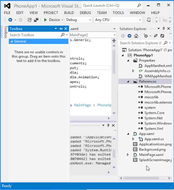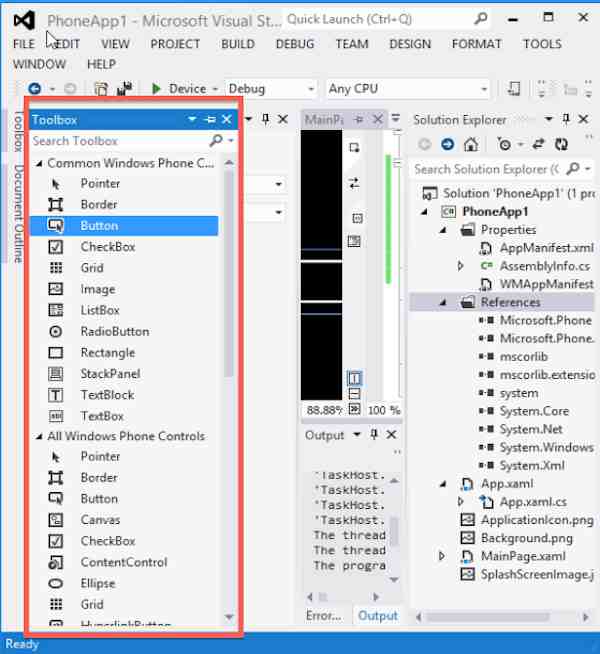 This is exactly just like .m (and, of course, .h) files not being able to describe a GUI in iOS programming, unlike XIB files containing the serialized version of them. Under the “Toolbox” tab, there are two UI widget-related tabs, Common and All Windows Phone Controls. You, as with Xcode, can quickly search in the widget library, even with both tabs closed, by entering the search expression in the textfield above them: