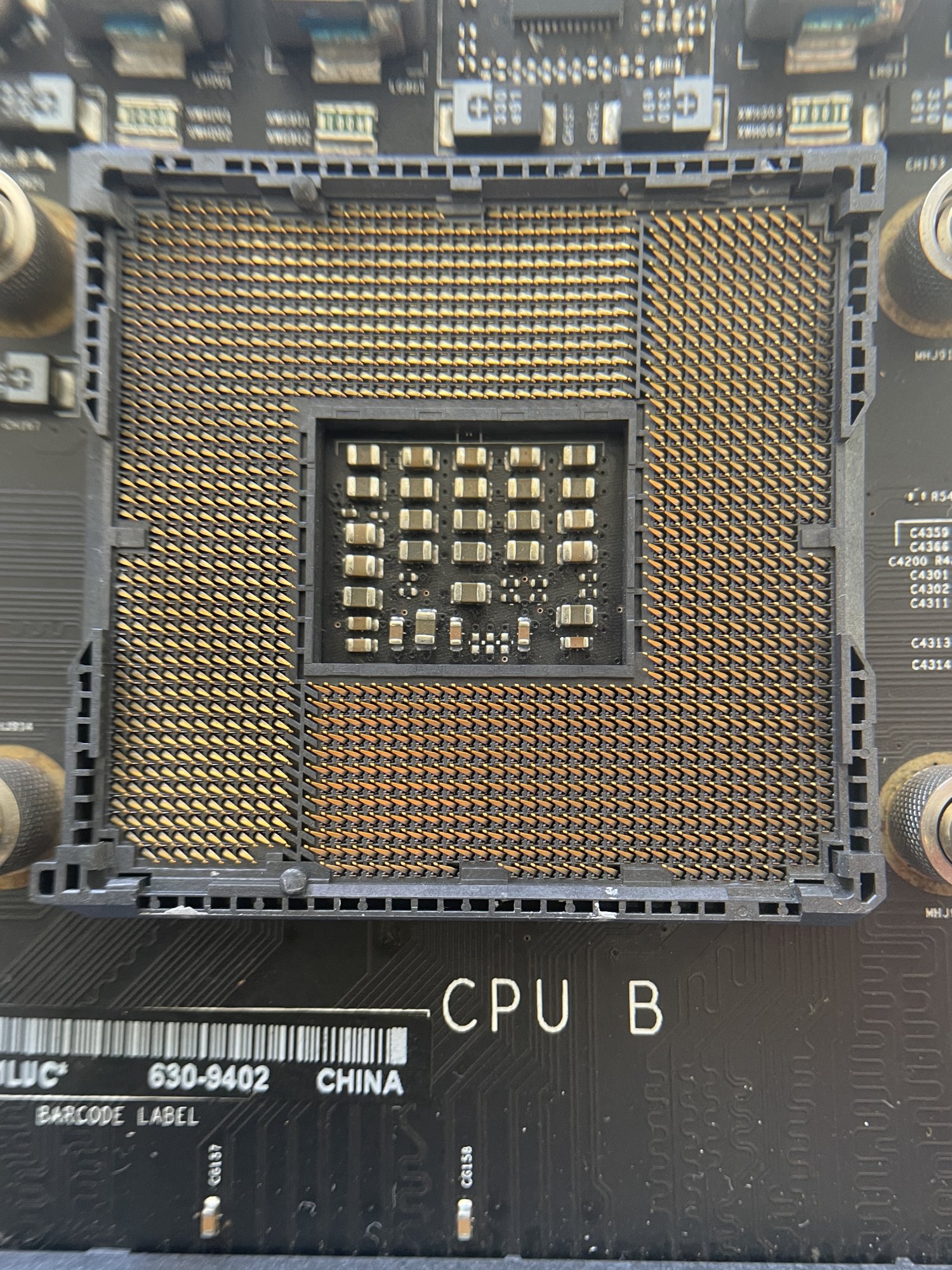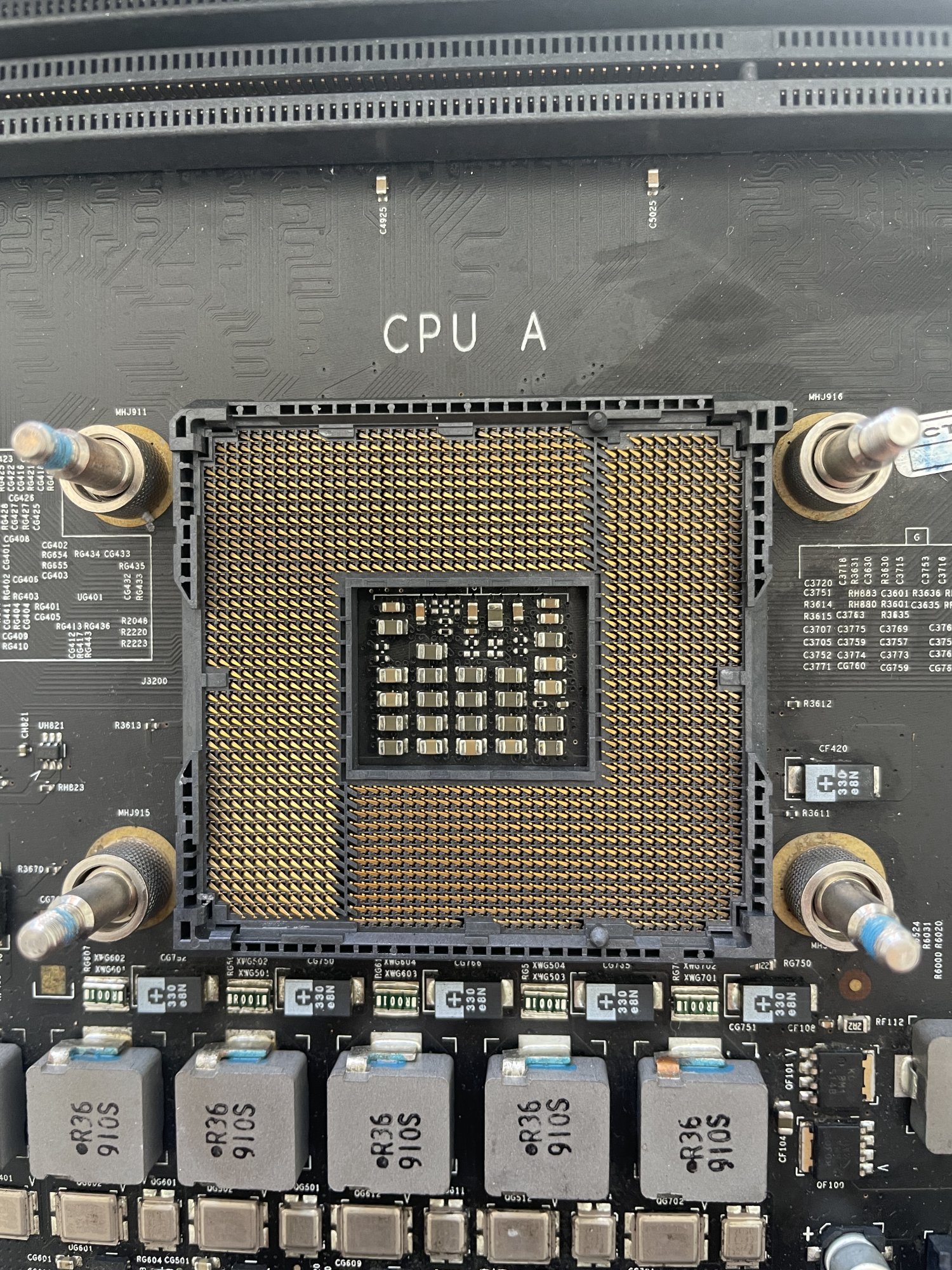 I bought this 2009 dual tray as non-working in hopes of being able to repair it easily. I changed the northbridge rivets and replaced the thermal paste, inspected the CPU sockets with a magnifying glass and everything is intact. changed the CPUs with a pair of 2.26ghz and a pair of x5680 tested and working. I inserted the dual tray into my Mac 09/ with flash 5.1 but the Mac doesn't post. the tray fans run at normal speed, there is no red LED on the backplane and the LED diag shows the green light flashing on "gpu_ok". I did all the tests with the GT120, with the RX580 and with an SSD in bay 1 with MacOS HS. the mac boots normally when I use the single tray. what else can I do? could the northbridge chip be burned? socket damage? Thanks for the attention.