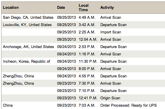 China 09/23/2013 4:37 A.M. Order Processed: Ready for UPS