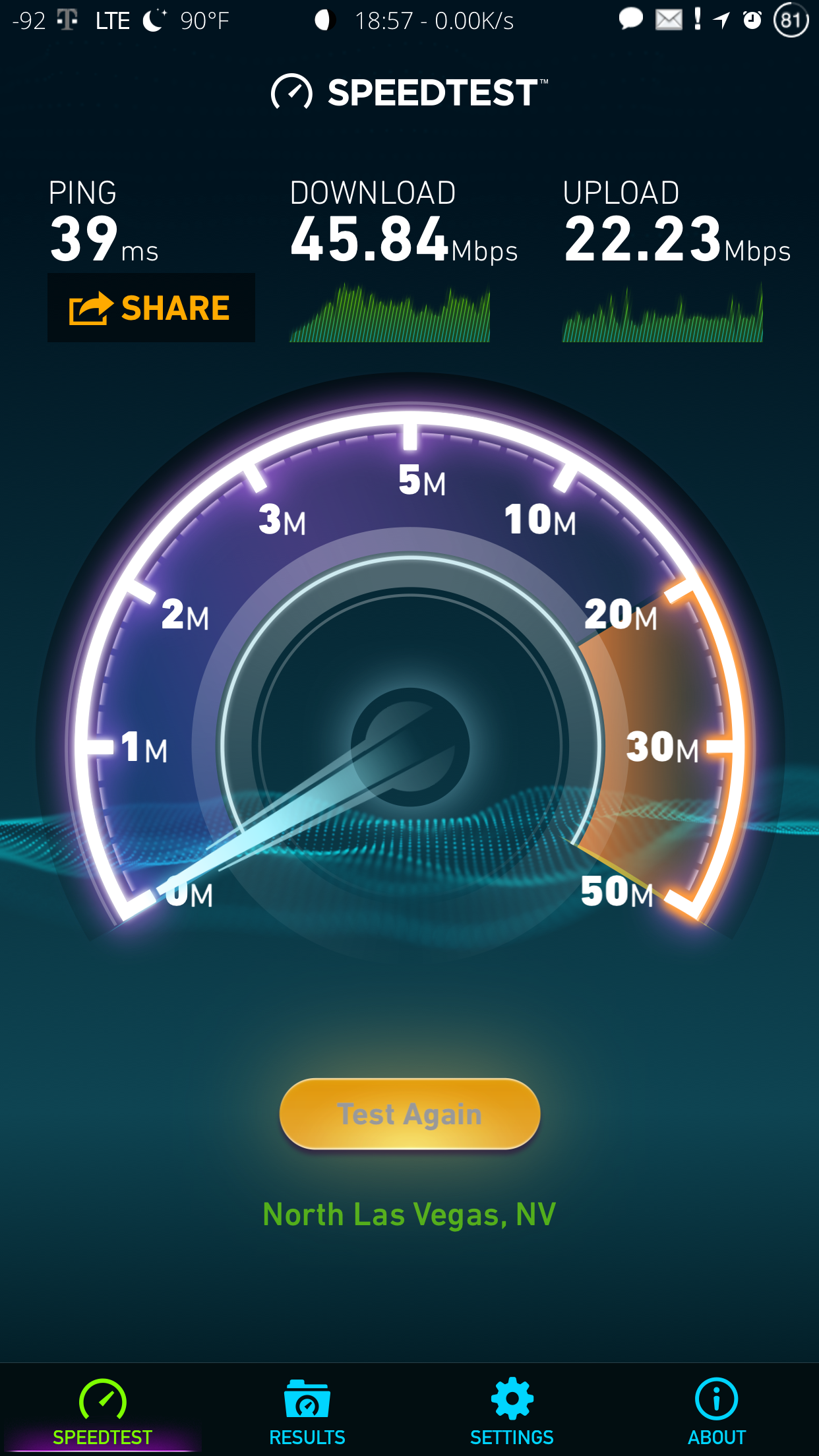 Today, sitting at Colados (coffee shop) in Avondale, AZ I pulled the fastest speed test I have ever done on any LTE device I have ever owned since September 2012.