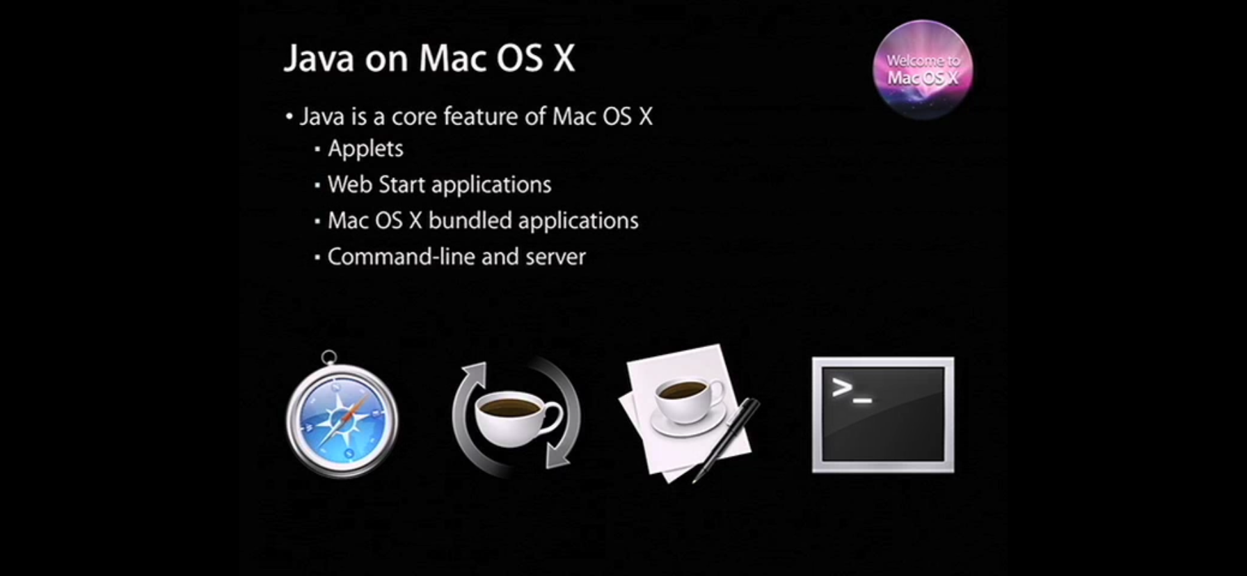Java in OS X is a Core Framework and has been built into the operating system since 1998.
