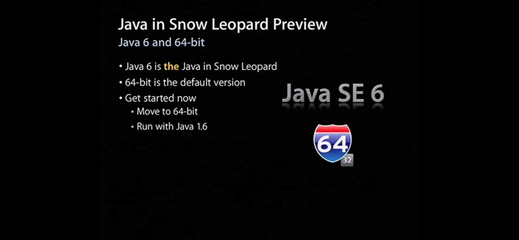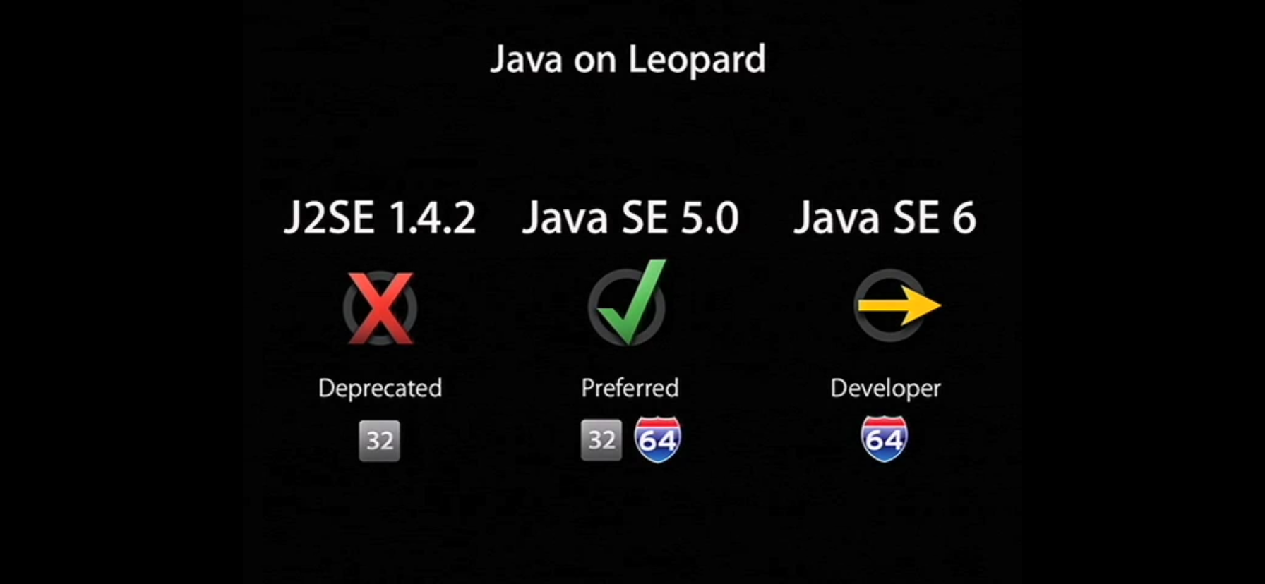 Note: Java SE 6 for Mac OS X 10.5 is only available on 64-bit capable Intel Macs.