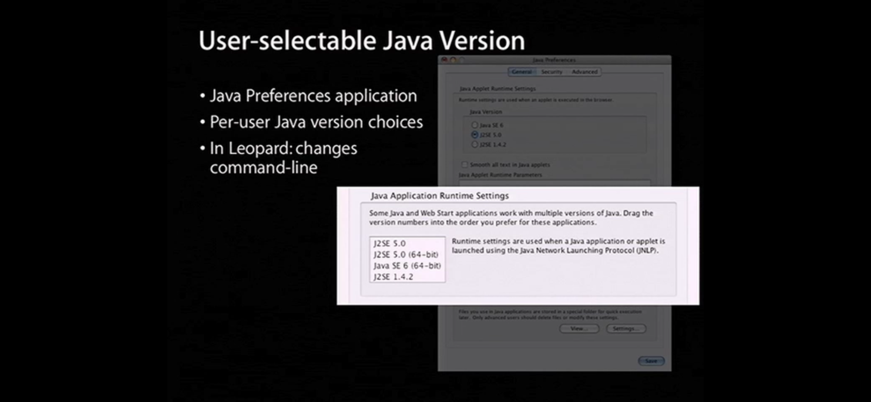 Note: The "Java for Mac OS X 10.5 Update 6" release disables J2SE 1.4 by default, but leaves the existing 1.4 installation present.