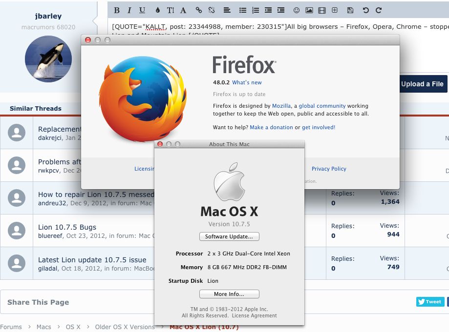 I'm running Lion 10.5 and the latest version of FireFox 48.0.2, now how's that for support?