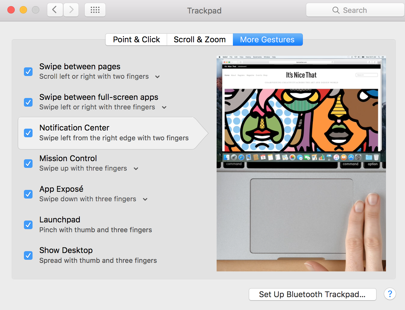 1. FINGER GESTURES - I am used to my old finger gestures setting from Snow Leopard - e.g. three fingers left- go back, three fingers right - go foward etc. Is there a way how to set this up in El Capitan too? Under trackpad in system preferences, that seems not to be possible anymore.