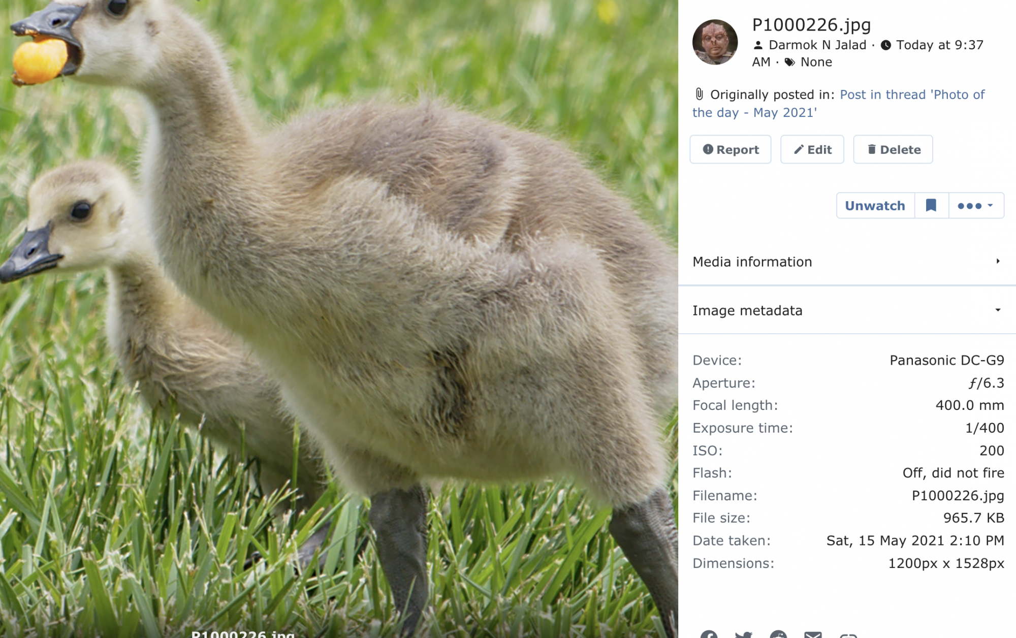 Hmm, I will have to try this. Some people strip metadata when they export for web.Great detective work. Hopefully we kept the spirit of the law going.I don't post EXIF data out of laziness. I'm spoiled by MU-43.com that includes the EXIF under each submittal for subscribing members. Related, I notice if you upload to MR to post, you can click on the image, then the little arrow on the upper right brings up a sidebar, which halfway down has an expandable metadata option. The only key detail lacking is lens info. What I don't understand is why it does it for some posts but not all?