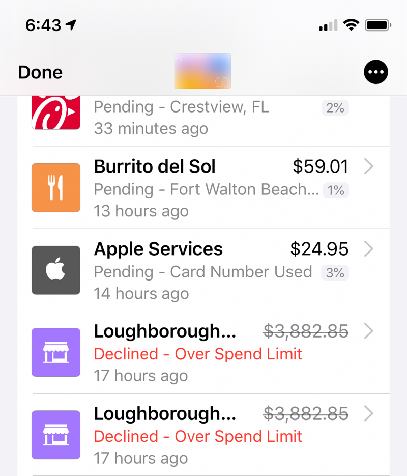I'm glad I have another credit card with me as I'm traveling and my credit limit on the Apple Card is maxed out with the fraudulent charges. So disappointed.