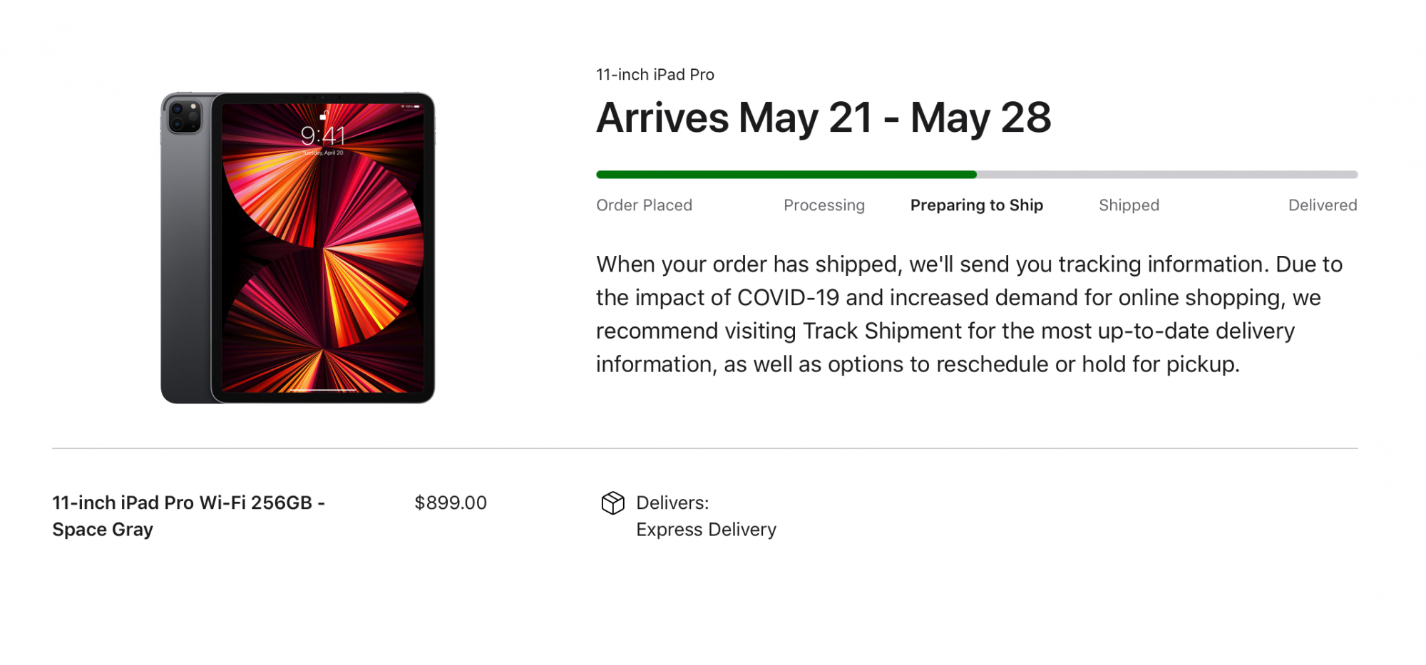 I just check my iPad Pro and now its preparing for shipping - I just hope there was one in PA where my new siri remote is and the tracking number for my siri remote says its ready but UPS dose not have it yet so I hope my iPad Pro is there so both of them can come on Monday
