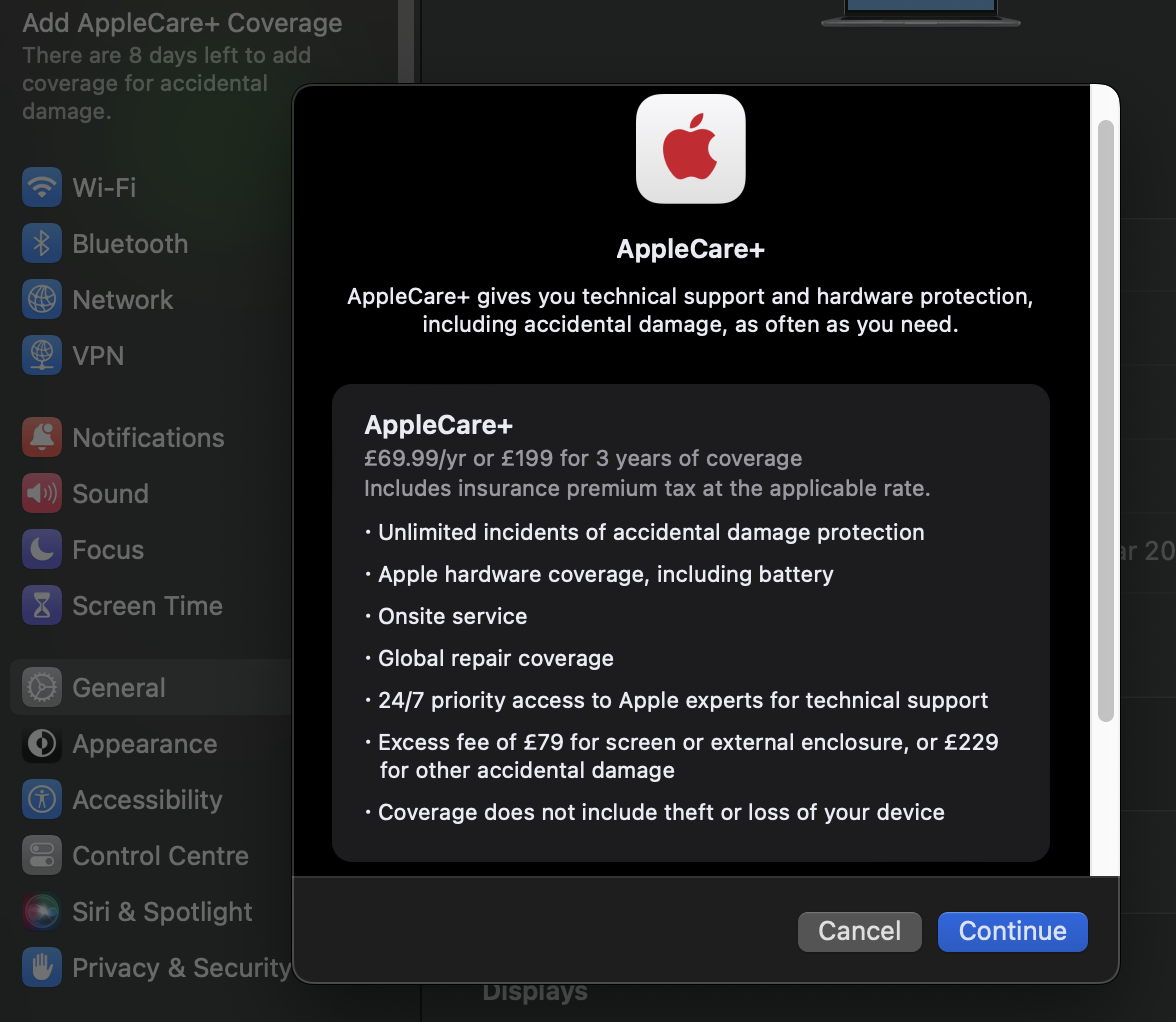 Is this a mistake? I know that earlier on you can take your Mac to an Apple store for them to inspect it if you want to add AppleCare+, but I didn't request that. Should I assume that the store have added this option because they've assessed my MBA and everything was OK?