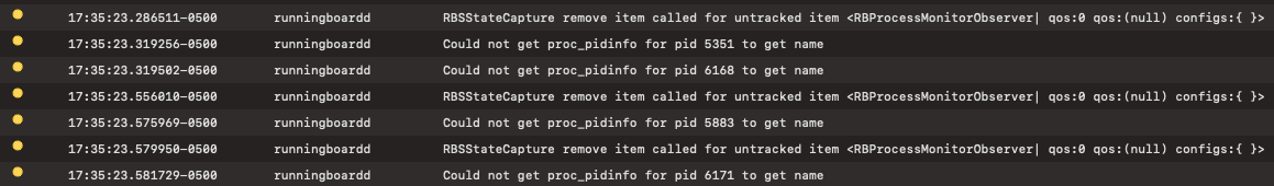- Most convincing - I am an iOS developer and I started studying the console output. Sure enough, whenever the stutter happens, 7 warning events are logged from the "runningboardd" process (see the attachment). When returning home without a stutter, these events do not appear. I have reliably seen this pattern every time.