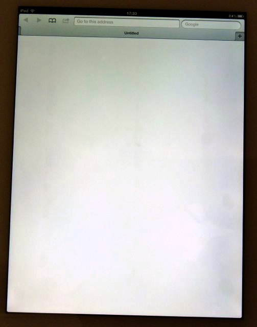 Noooooooooo!!! apparently, when I take a photo of it in a darkened room and just tweak the levels a bit, my perfect screen is revealed to be all blotchy and discoloured! It looks perfect to the naked eye, but clearly my vision is being corrupted by Apple brainwashing. I can't bear it. I will be returning my iPad forthwith...