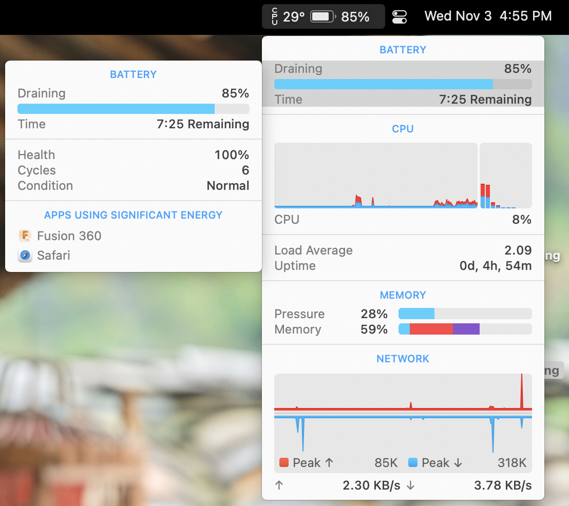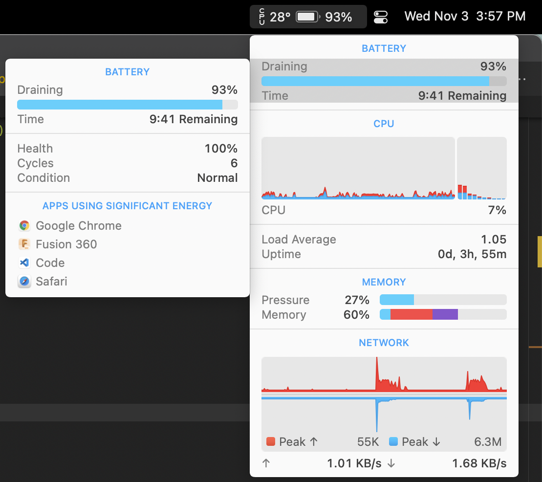 But there are people who are wishing for more performance than M1. Personally, I do admit that M1's CPU performance is more than what I need, but the GPU performance is not. M1 Pro is just barely meeting what I need for Fusion 360. Even so, this is after running Fusion 360 + Google Chrome + VSCode + Safari + Capture One Pro: