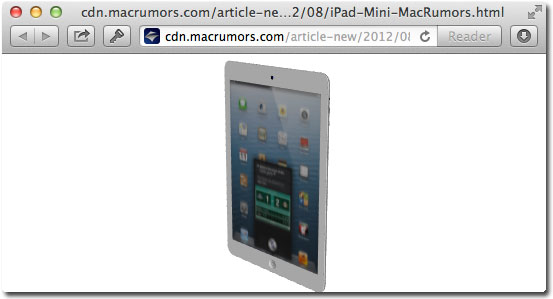 Our interactive 3D model of the iPad mini, which requires WebGL, allows users to explore the device's design from all angles to get a good feel for its dimensions. On OS X, Safari users can turn on WebGL by first navigating to Safari -> Preferences -> Advanced -> Show Develop menu in menu bar and then choosing the "Enable WebGL" option from the Develop menu that appears.