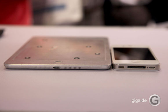 As has been previously noted, the 7.85-inch iPad offers 66% of the surface area of the current 9.7-inch iPad and almost 40% more surface area than competing 7-inch tablets. This size comparison shows it head-on next to a current iPad.