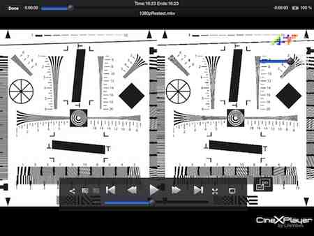 Unfortunately, the app doesn't really deliver, particularly if you're on a Retina-screen iPad 3/4 and not on an XGA-resolution one (iPad 1/2/Mini): it doesn't make use of the screen resolution when doing non-iOS-native (non-MP4/M4V/MOV) playback. This means you won't be able to make much use of the (otherwise, indeed excellent) picture sharpening DSP on your hi-res iPad. A screenshot showing this, with the halved screen to also show the effects of sharpening of the resolution chart (original file for you to test):