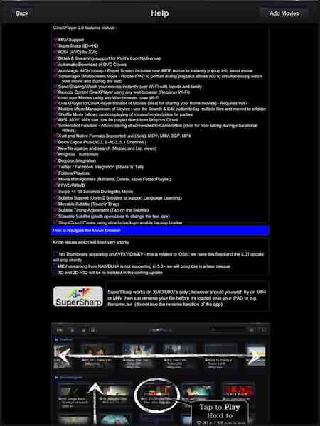 All in all, I (still) don't really recommend this player if you plan to play back MKV's and/or have an iPad 3/4. iOS native video playback is better but, again, then, you won't be able to make use of the sharpening unless you do what's hinted on in the docs; that is, rename the files to AVI's. Then, however, the playback will suffer from the same stuttering as with playing back MKV's.
