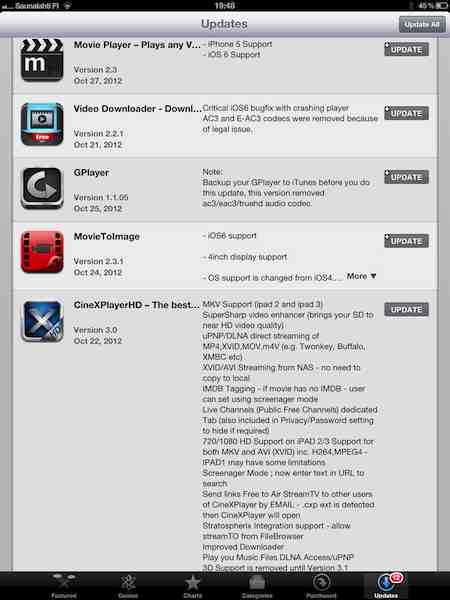1, the next version fixes the lack of the iPad 3/4 Retina screen support, fixing the biggest problem with the current version (3.0 released on Oct/22/2012) of the player