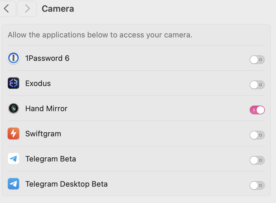 Thanks but i don't even have all those apps in the camera menu. But yeah Safari seems working. The newly installed apps like meets and edge don’t workNothing ever gets access to my camera, there is even a tape over it.