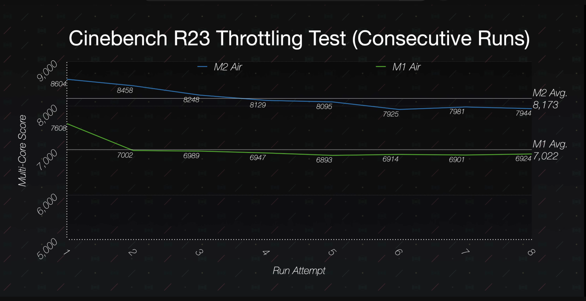 Except it won't overheat, it will throttle. And even when the M2 Air is fully throttled, it outperforms the M1 Air when it's not throttling at all.