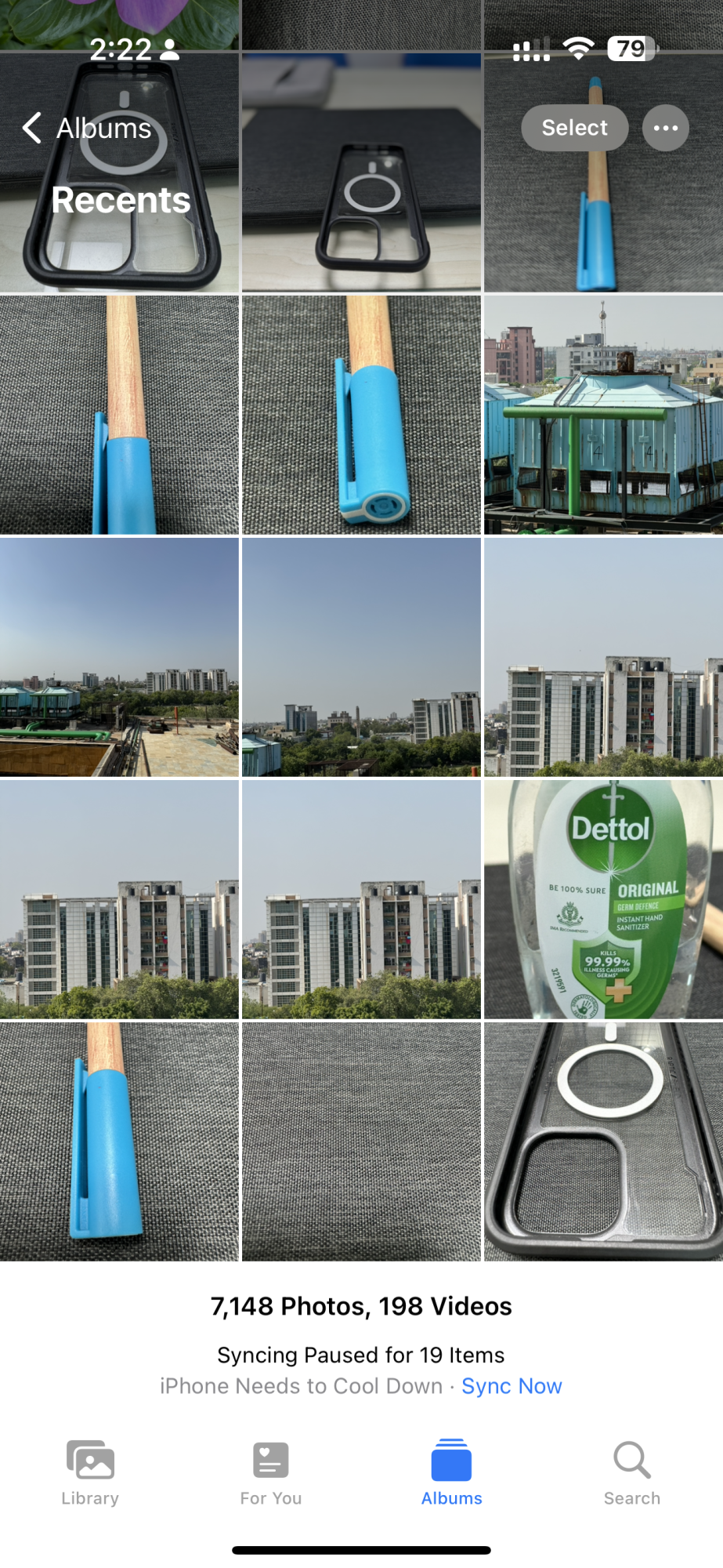 1. Syncing paused....... "iPhone Needs to cool down". Lasted 2 mins. Took a screenshot.