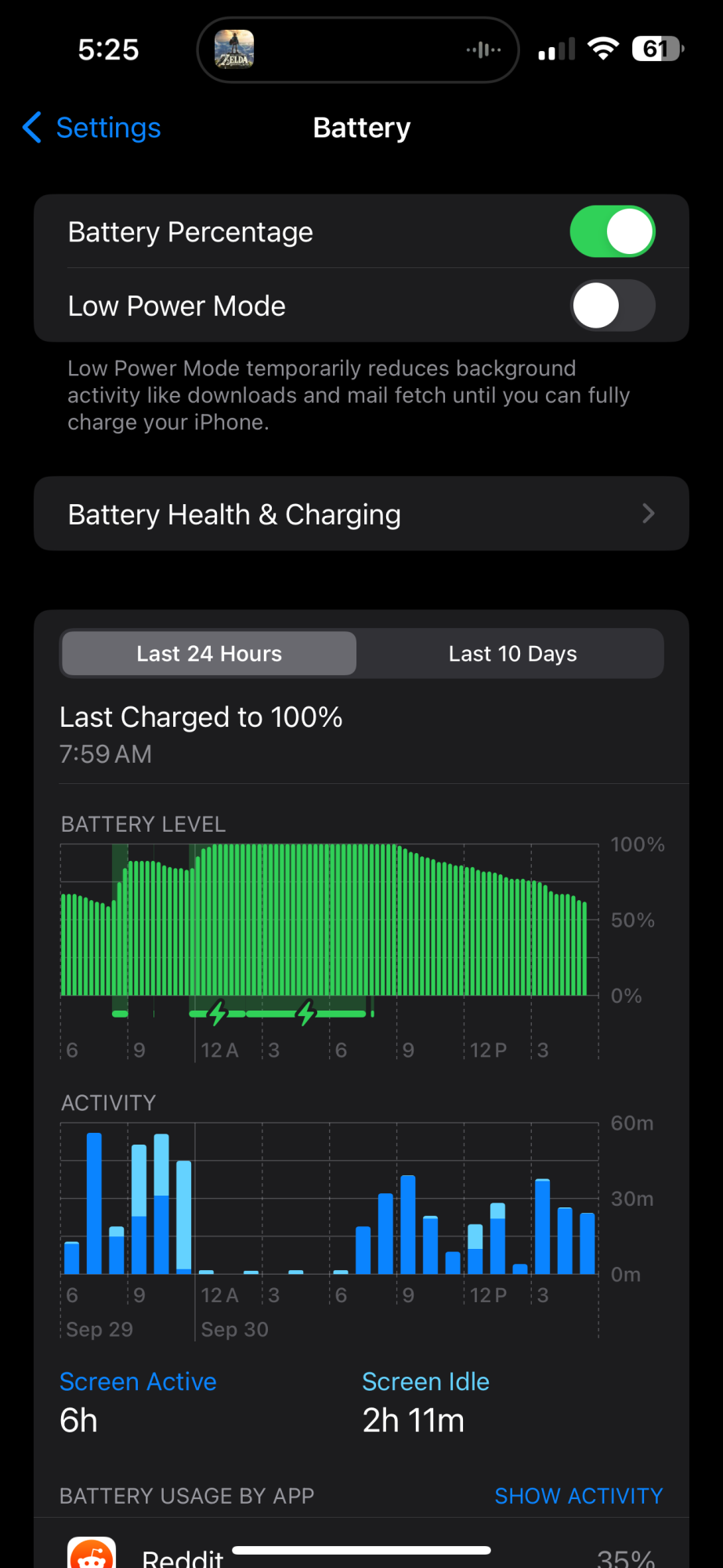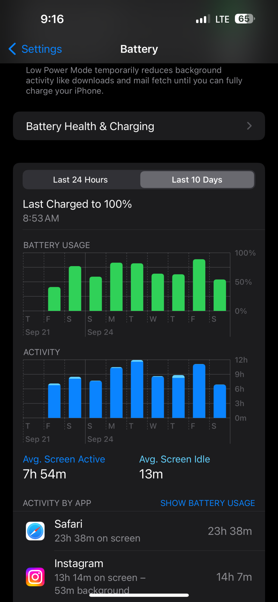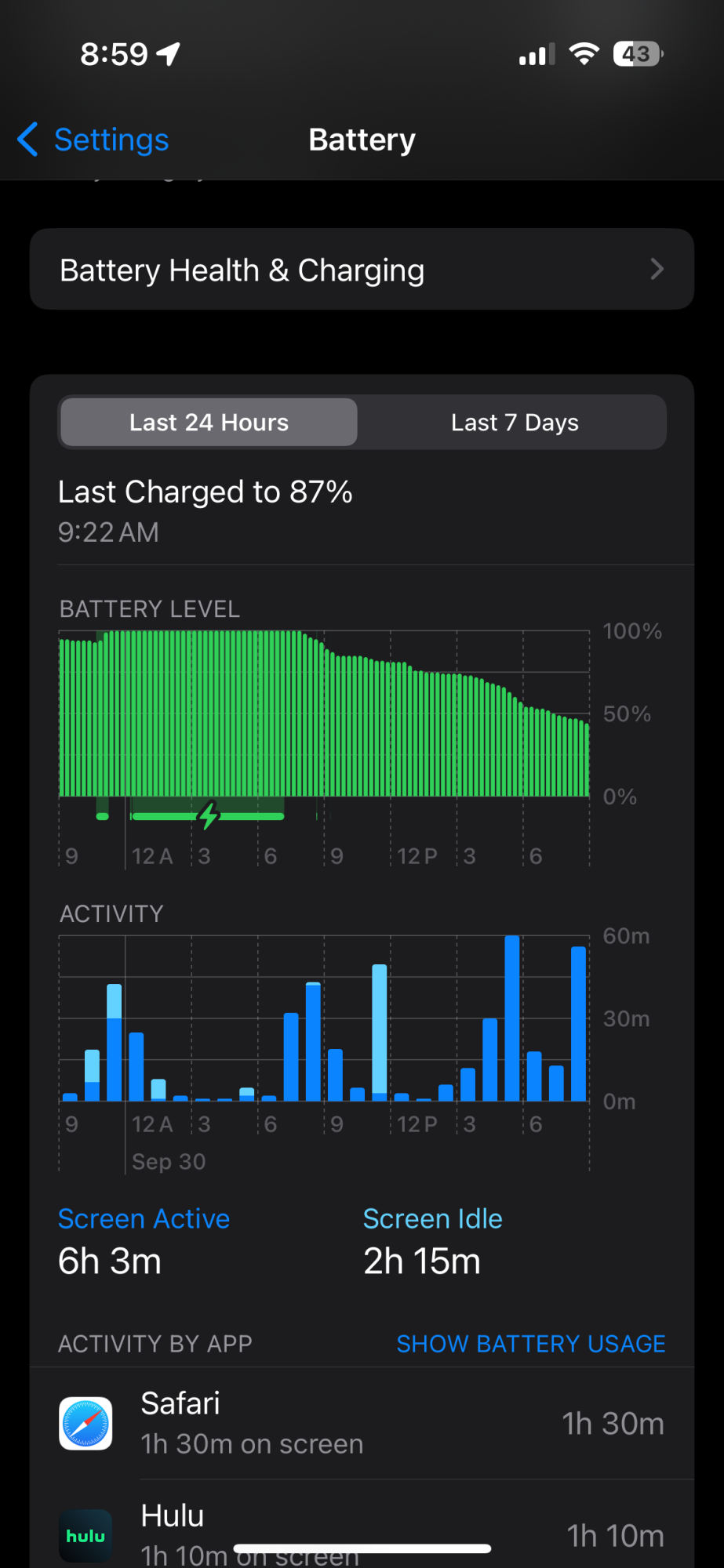 The iPhone 15 Pro Max is my first device in the Plus/Max line. While there are pros and cons I will say that the battery life is REAL. I didn't have a 15 Pro, but I did have a 14 Pro and it seems the battery life is similar. I'm ending my normal WFH desk with 80% battery instead of 60%. Today I've played around with my phone more and you see that I'm on track to get 12 hours of SOT where I was LUCKY to get 6 on my 14 Pro.