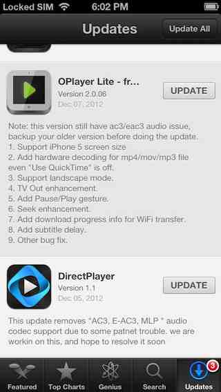 Unfortunately, after having thoroughly tested it, I must state the new version doesn't have a better set of codecs. It's certainly lagging behind the top players, codec speed-wise (and still doesn't offer goodies like semi-hardware MKV / AVI playback offered by several other players now), meaning you should only use the player for playing back lower-resolution footage and/or on the fastest models (today: iPhone 5 / iPad 4) only. Nevertheless, not even the latter can properly play back 1080p H.264 footage with the software decoder in Oplayer it's certainly more stuttering than the decoder of the in this regard considerably better players; for example, yaPlayer.