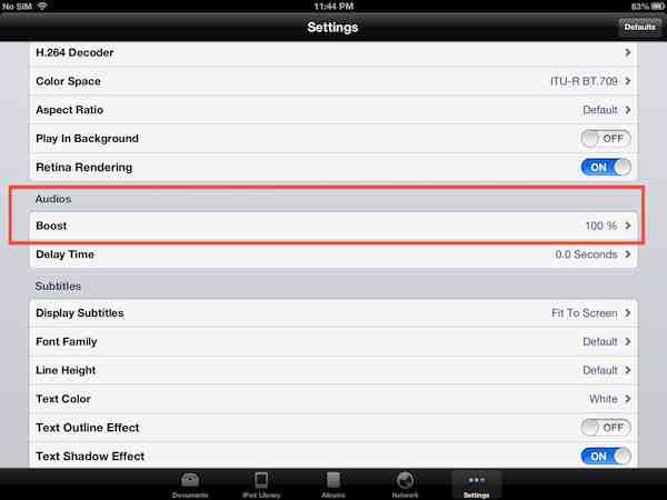 All you'll need is getting the absolutely excellent iFile, navigate to /Library/Preferences in the home of nPlayer, tap com.newin.nplayer.plist and select “Property List Viewer” from the list. Then, just tap “Settings” and, then, AudioBoost. Then, you can already modify its value: