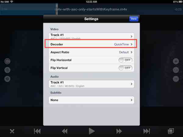 If you try to play back an iOS-native media file with an AAC audio track, make absolutely sure you switch to Hardware decoding from the default QuickTime. Otherwise, there won't be audio boosting. Feel free to test this with the video I've linked to above: there'll only be volume boosting if you do change the decoding mode. Let me present you with a mini-tutorial on this: