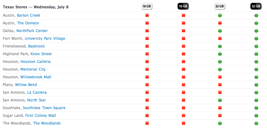 It looks like the entire state of Texas is out of all the 16GB models and many stores in the state are also sold out of the white 32GB model.