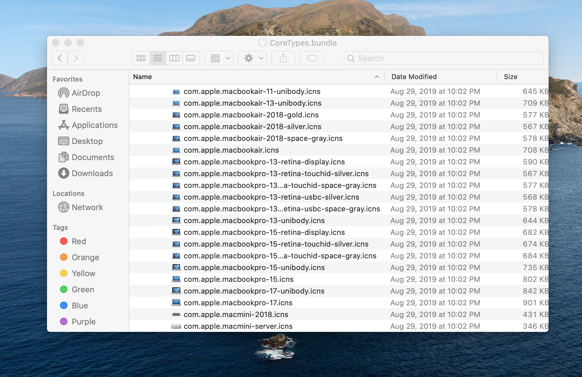 At least on my test Mac running 10.15.1 beta 2 (build 19B77a), these new MacBook Pro icons are in a bundle all by themselves.View attachment 870593