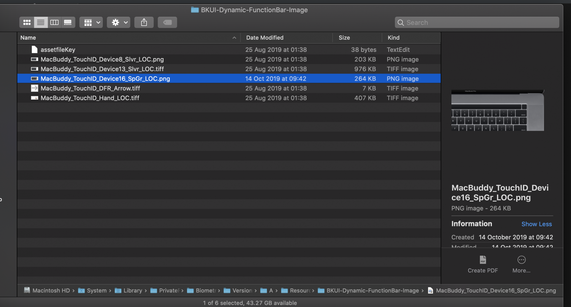 The image came from no-one else but Apple. It literally is in public release of macOS Catalina 10.15.1. Go find it yourself, the path is: /System/Library/PrivateFrameworks/BiometricKitUI.framework/Versions/A/Resources/BKUI-Dynamic-FunctionBar-ImageI already did. The image shows that keyboard itself is a butterfly keyboard which is not a reliable source. Why would they keep using that for? It is well known that the butterfly keyboard is very unreliable and fragile that Apple has to pay for repairs.