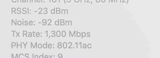 I just ran my old late 2013 13" side by side with my 16" to compare WiFi performance. It seems like WiFi statistics are different on the two models. When I press option + left click on the WiFi icon the 16" shows a Tx rate of around 60 - 100 MBit. On the 13" it sits at 350 MBit.
