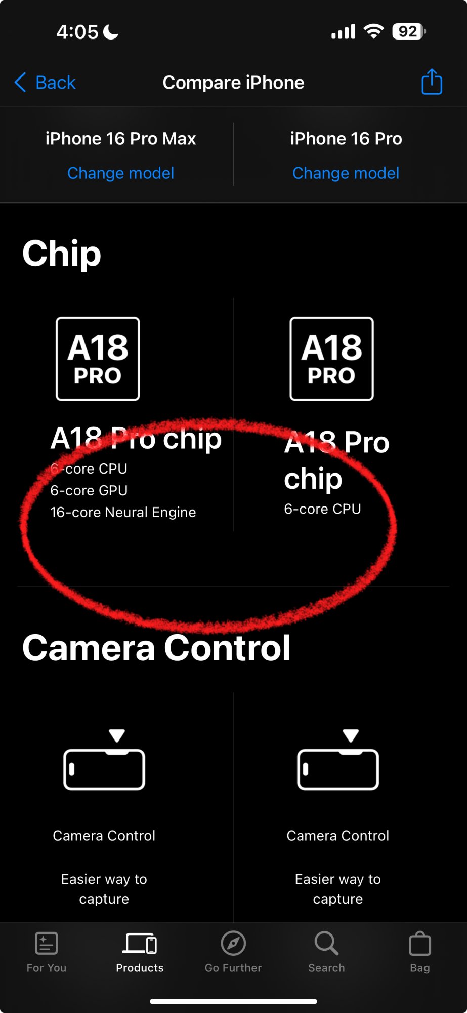 Lol you've got it! The 16 pro certainly has no GPU or neural engine.