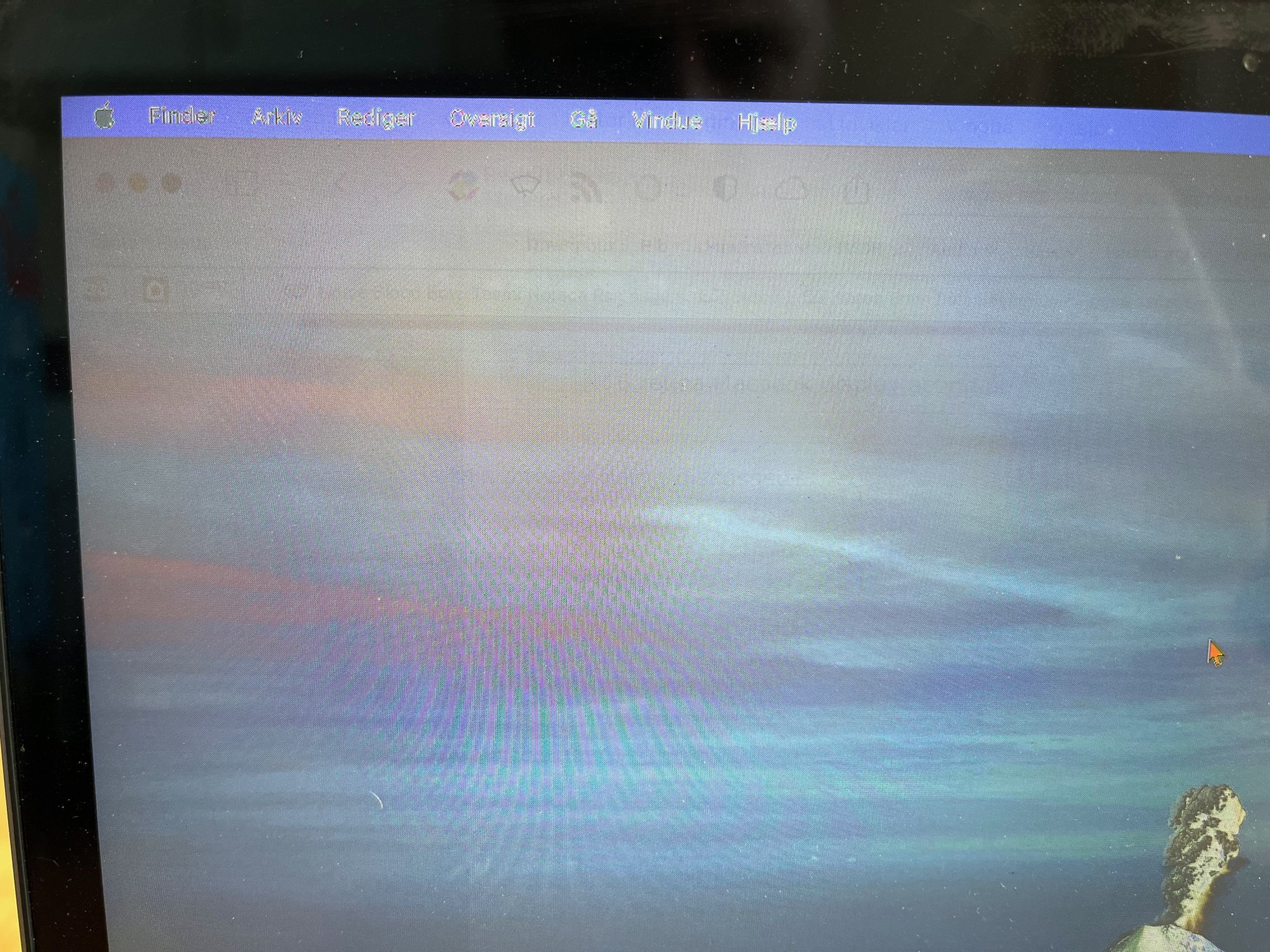 At first I expected the display cable, but now I think the problem is more severe, as I have now seen examples of hidden windows leaking through - I've attached another picture where one can see a hidden Safari window leaking through to the Desktop - And I don't think a faulty display cable could do that, so now I suspect that it is actually something more severe? Also, the problem is worse, the colder the Macbook is, for some reason..