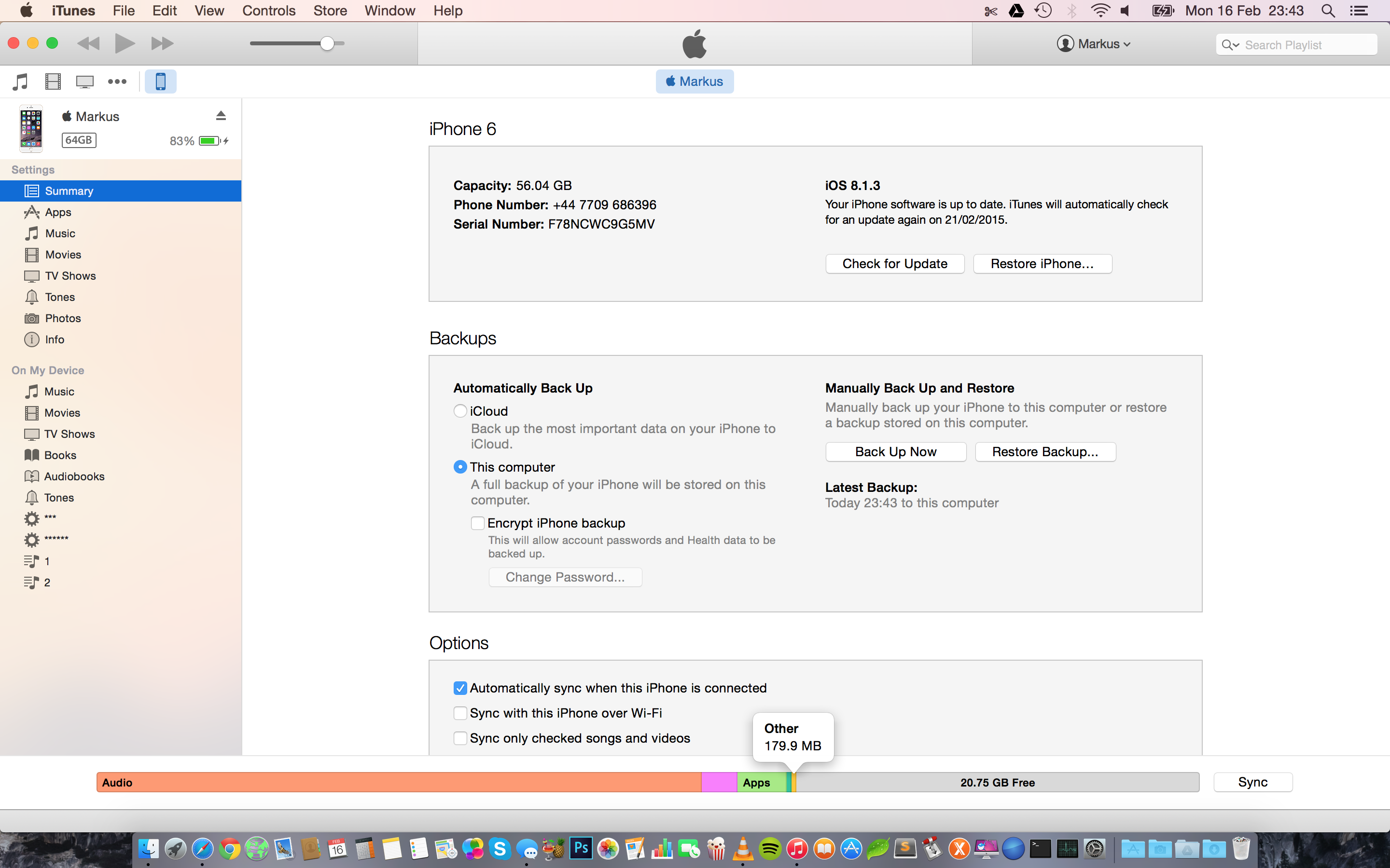 Is this normal? My 'Other' space is only 179.9MB on iOS 8.1.3