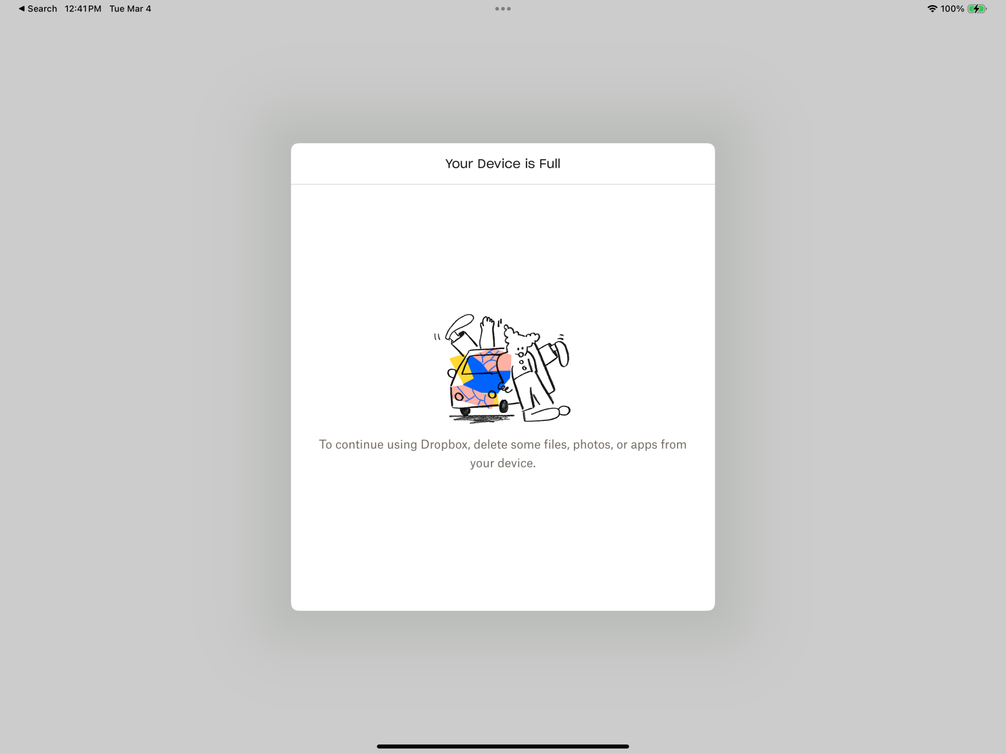 So first noticed it on my iPhone when open TikTok and it told me out of storage, then try to open Dropbox and it tells me out of storage, and finally a photo editing app I edit photo go to export it and it tells me cant cause I’m out of storage.