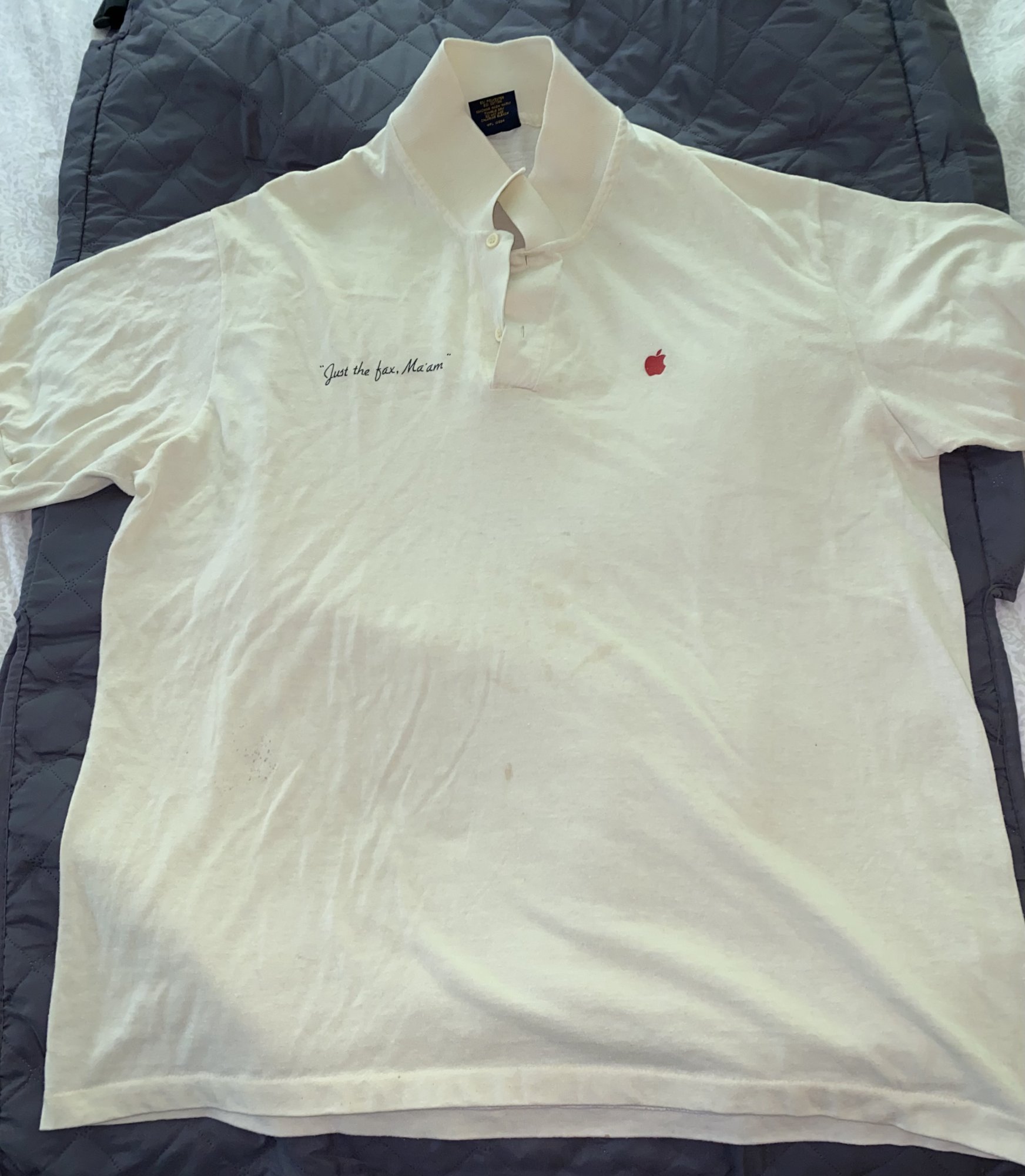 My Dad passed away a few years ago and I was recently sorting through his old clothes. I found several apple shirts and one jogging suit that were given to him when he was an employee. I know they are rare and I’d like to get an idea what they are worth.