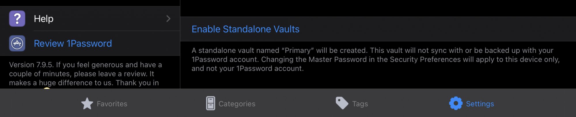 So if you are already using 1Password 7 with a standalone vault and standalone license, you are in the sweet spot with being able to move from Intel to Apple Silicon. You can run 1Password 7 on any Silicon Mac and be good ad infinitum. I was in a bad spot because 1Password 6 was Intel only, so when Apple drops Intel support I would be screwed completely, as I'd have no viable upgrade path with a standalone vault.