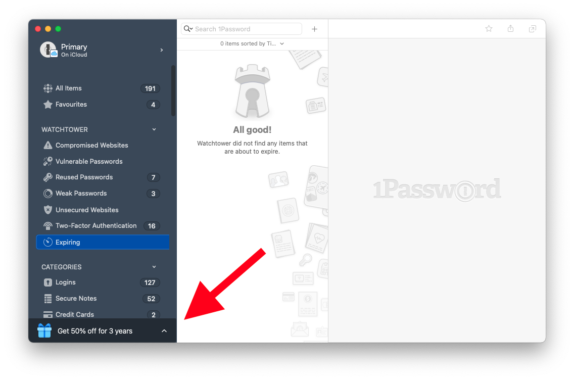Forced advertising like that really really REALLY bugs me, especially for an application that I pay for. A quick “hey here’s the offer” then goes back in hiding is not great but ok, sure. But forcing that on an application I paid for?! Good grief.Used to love 1Password now they pull this stunt:-