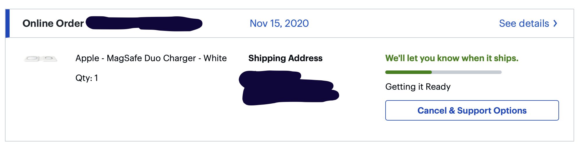 Scroll up a little. I’m trying to go pick up your Xbox Series X on your behalf 🤣My MagSafe duo also says getting ready, was also charged already. wonder if we will get them before apple starts selling them