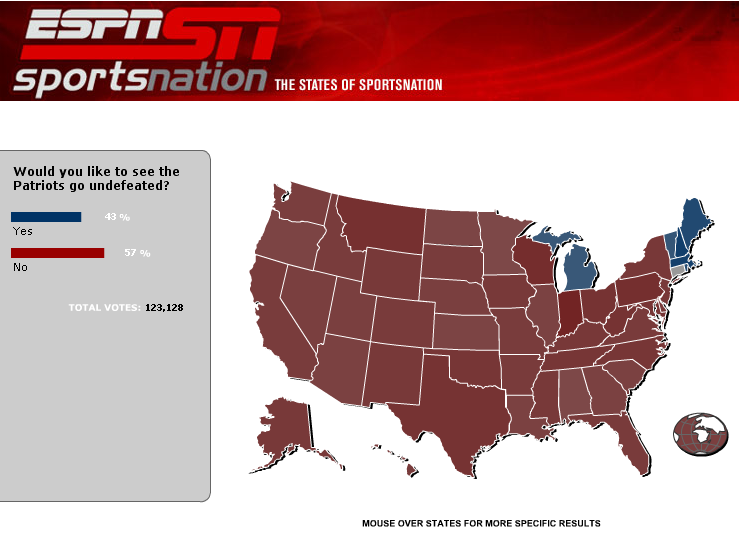 How so? Were you expecting more people to be in favor of the pats? I wonder whats up with michigan though.