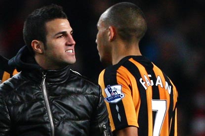 Eyeball to eyeball: Cesc Fabregas confronts Craig Fagan after the match