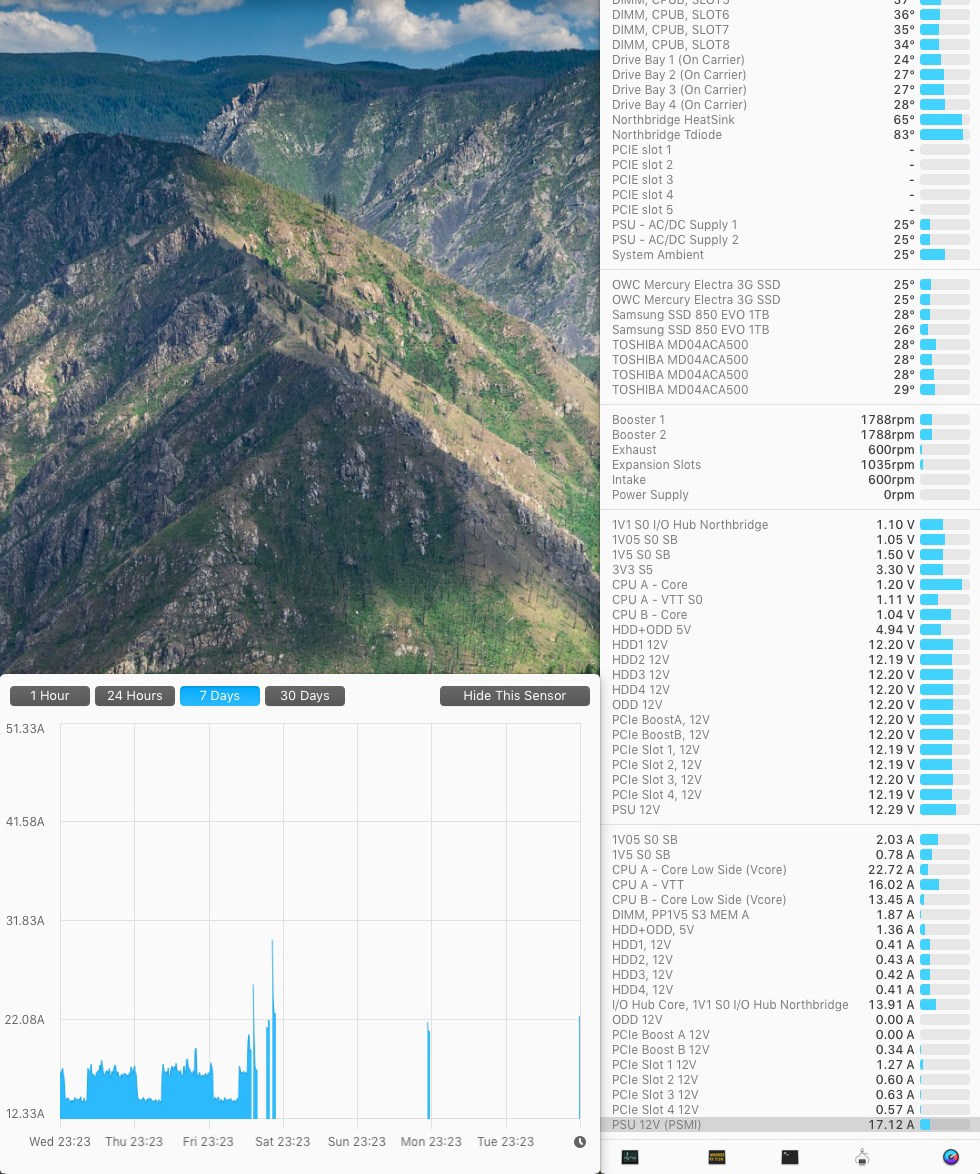 Following are a few screen shots from iStat menus showing the reading from my system. Do you think they look unusual? any ideas what could be the issue with my system? what do you think I should check next?