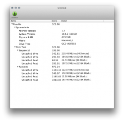 BTW, so far as drive speeds go, the original stock drive got a 37 in Xbench, the replacement 320GB drive scored a 57, and the new SSD scores a 311