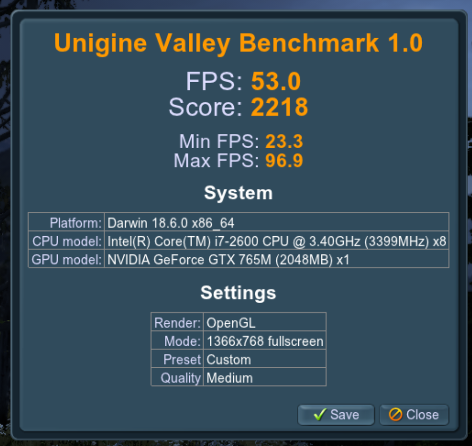 First, can you please do a Valley(https://benchmark.unigine.com/valley) and Geekbench(https://www.geekbench.com/download/mac/) Compute benchmark? It would be really helpful to compare the scores. You can see the settings we used for the benchmark on the screenshots previously shared.